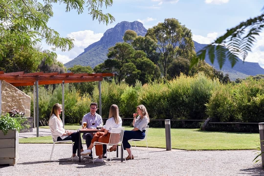 Taking advantage of its location amongst the southern Gariwerd (Grampians National Park), the restaurant offers floor to ceiling vistas of Wurgarri (Mount Sturgeon) and Mud-Dadjug (Mount Abrupt).