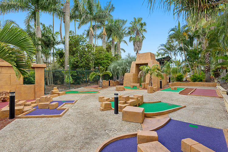 Brisbane Holiday Village is a top location for exploring all the sights of the Sunshine State’s capital city, with no shortage of fun to be found in the park itself. Run a family tournament on the 18-hole mini golf course, pedal up a storm on the 350m bike track, and don’t miss the spurting mushroom fountains of the kid’s shallow splash pool. Budding sports stars can make the most of the tennis court and multi-purpose sports field (ideal for netball, hockey, or soccer) while mum and dad can relax poolside or grab a drink in the licensed restaurant. If you have some little animal lovers in tow, head 30 minutes west to Lone Pine Koala Sanctuary – the biggest koala sanctuary in the world – to hand-feed kangaroos and cuddle a koala.