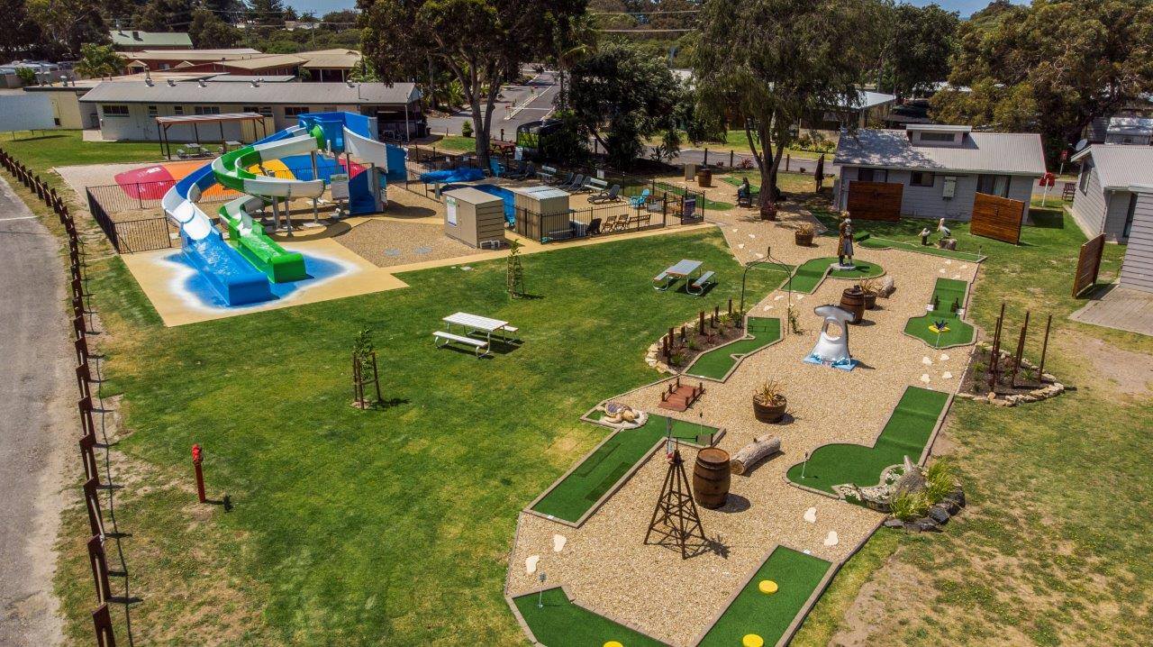 Just over an hour south of Adelaide, beachside Victor Harbor is a top spot for outdoor adventure and family friendly activities. The park is set on 22 spacious acres with a pool, games room, and bouncing pillow, and a brand new mini golf course and water slides to keep the whole family entertained. There are plenty of things to do in Victor Harbor—take the horse-drawn tram over the Granite Island bridge (and you might catch a glimpse of the famous little penguins), ride a heritage steam train, or visit the SA Whale Centre to learn about our favourite ocean giants.