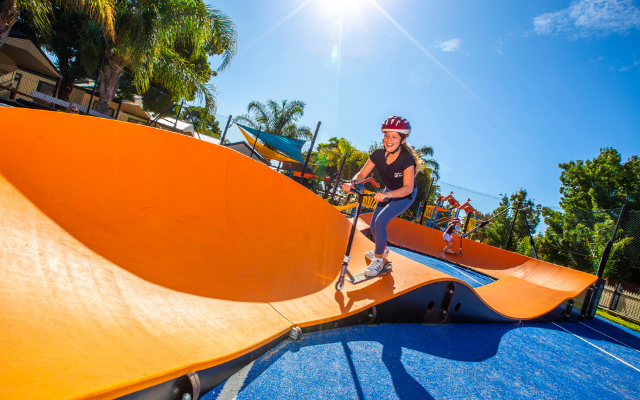 You know the feeling, right? You get to your hotel room and there’s nothing for the kids to do. Not so with caravan parks! Packed with great kids’ facilities from playgrounds and waterparks to mini golf, games rooms and pump tracks, your kids can have fun and make friends while mum and dad get some time to relax.