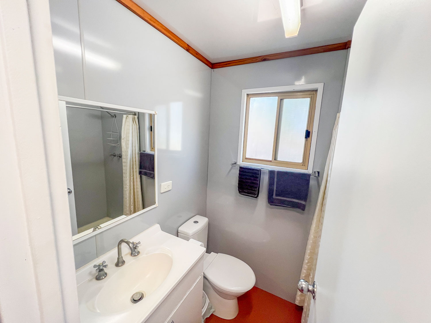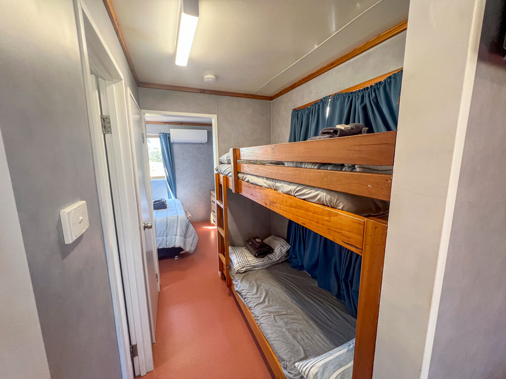 The accommodation features a double bed in the master bedroom and one set of bunk beds in the hallway (more suited to children), a reverse-cycle air-conditioner in the living area and master bedroom, a fully equipped kitchen including a stovetop, microwave, fridge, kettle, toaster and cooking utensils, and a private bathroom with a toilet and shower.